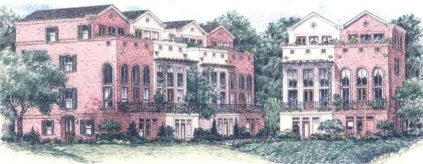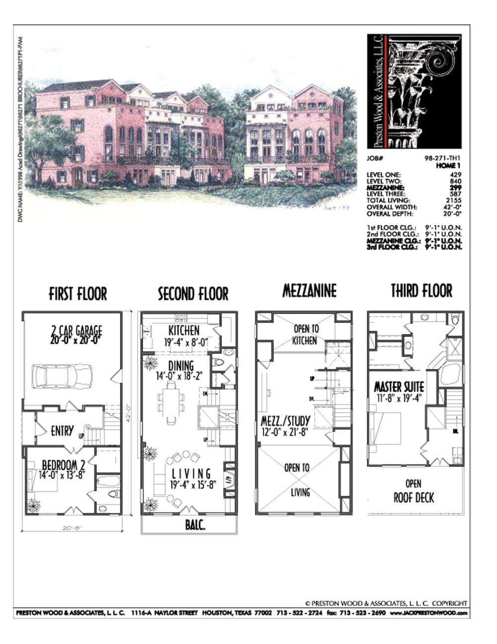 This duplex townhome plan has 2155 square ft. of living space. This duplex townhouse plan design has a depth of 20′-0″ and a width of 42′-0″. This duplex townhouse plan has a flipped floor plan attached. This town home plan is sold as part of a multi-unit building, for single floor plan purchases or plan modifications please call us.