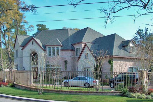 This traditional style home design has 6047 square ft. of living space with 4 bedrooms and has an attached garage. This traditional style house plan has a depth of 76′-3 1/8″ and a width of 111′-3″.