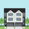 Measurements are: 1579 (each side)/3158 (duplex) square ft. of living space and has a width of 49′-3” and a depth of 32′-0″. This plan has three bedrooms and 2 1/2 baths. Highlights include the spacious master suite and a balcony off of the living area. Each side is available to purchase separately as well.