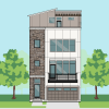 Measurements are: 2161 square ft. of living space and a width of 27′-0” and a depth of 32′-8″. This plan includes 3 bedrooms, each with their own bathroom, and an open-concept living space with a balcony. There is also a roof deck perfect for lots with downtown views! Two versions are available (A1.1 and A1.2).