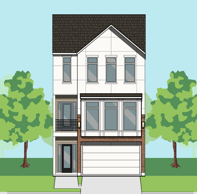 Measurements are: 2055 square ft. of living space and has a width of 25′-10” and a depth of 36′-10″. This plan has three bedrooms and 2 1/2 baths. Highlights include the spacious master suite, an upstairs utility room, and a large second-floor balcony.