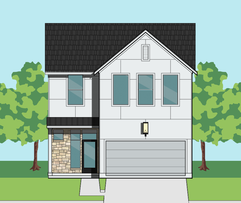 This house plan spans 2129 square ft. of living space over 2 stories. It has a width of 28′-10” and a depth of 50′-0”. Some great features include 3 full baths, all connected to bedrooms, and a half bath. The guest room on the first floor is perfect for friends and family as well. A unique architectural feature is the option to leave the family room open to the second floor, making the open concept feel even more spacious. Of course, buyers can close that opening to gain more floor space if they choose. The laundry room is on the second floor for convenience and is large enough to hold useful sinks. There are two elevations for this plan.