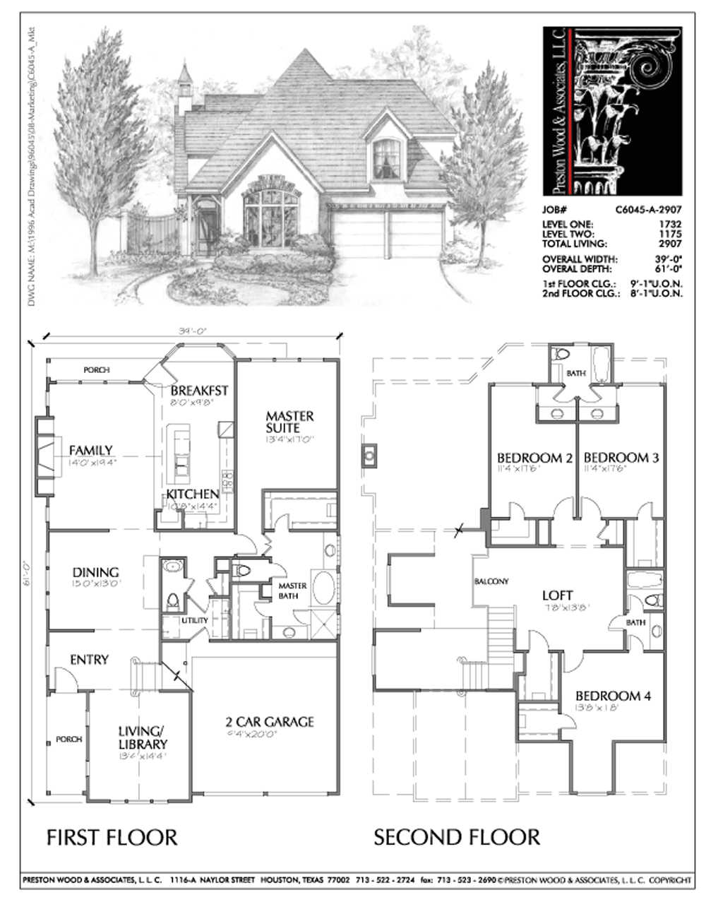This urban home plan design has 2907 square feet of living space. This urban house plan design has a depth of 61′-0″ and a width of 39′-0″.
