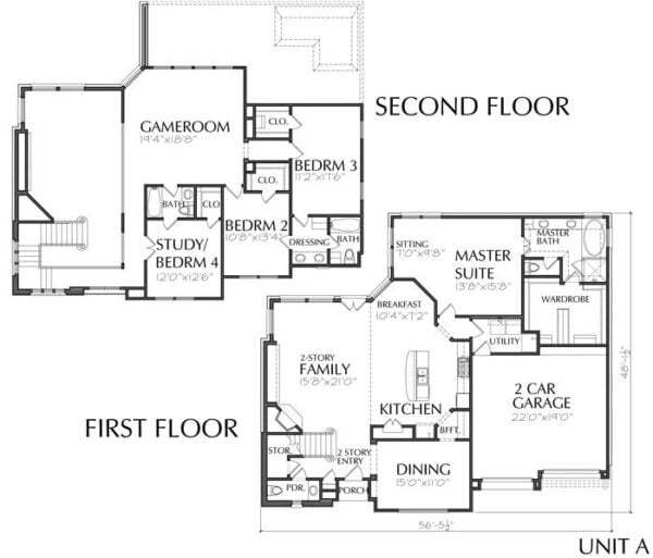 This patio home plan has 3100 square feet of living space. This patio house plan has a depth of 48′- 1 1/2″ and a width of 56′-5 1/2″.