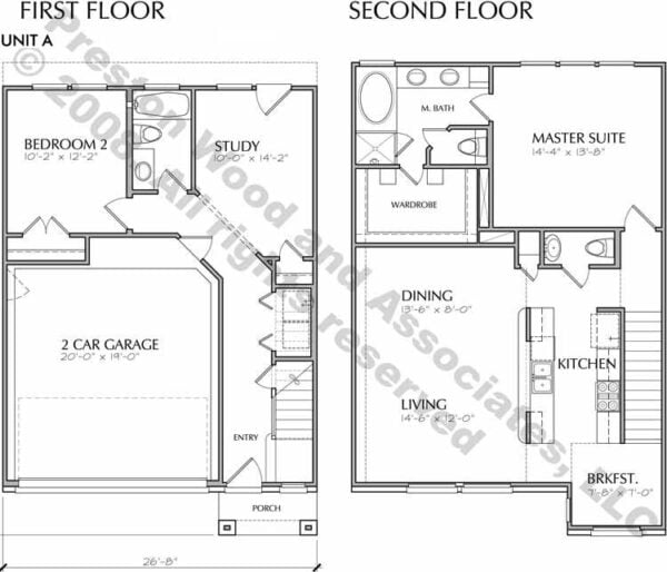 This small garden home plan has 1510 square feet of living space. This small garden house plan has a depth of 38′-1 1/2″ and a width of 26′-8″.