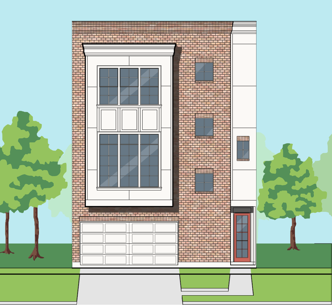 This townhome plan has a width of 29′-10” and a depth of 28′-6”. It includes three bedrooms and 3 1/2 baths. Some perks of this home include the large kitchen island the cozy, open living area perfect for entertaining! Right and left versions are available. Check out E8027 A1.1 as it goes well with this plan.