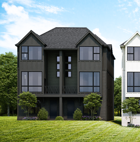 This townhome plan has a width of 37′-8” and a depth of 41′-10 1/2”. It includes three bedrooms and 3 1/2 baths. Highlights include the spacious kitchen with a large island, the second-floor balcony, and the fact that every bedroom has its own bathroom! Check out the plans separately at E9180 A1.1, A1.2, A1.3, A Duplex 1, A Duplex 2, E9180 B1.1, B1.2, B2.1, B2.2. Also take a look at B Duplex 1 and B Duplex 2.