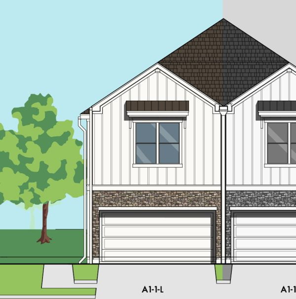 This townhome plan has a width of 19′-7” and a depth of 62′-4”. It includes three bedrooms and 2 1/2 baths. Highlights include the spacious master suite and the cozy yet open living and kitchen areas great for entertaining! There is a right and left version as well as a duplex.