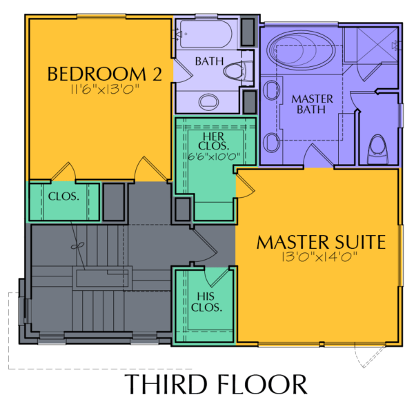 This townhome plan has 1972 square ft. of living space. This townhouse plan design has a width of 30′-11 1/2″ and a depth of 26′-10″.