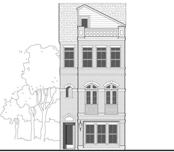 This townhome plan has 2176 square ft. of living space. This townhouse plan design has a width of 20′-9 1/2″ and a depth of 41′-7″.
