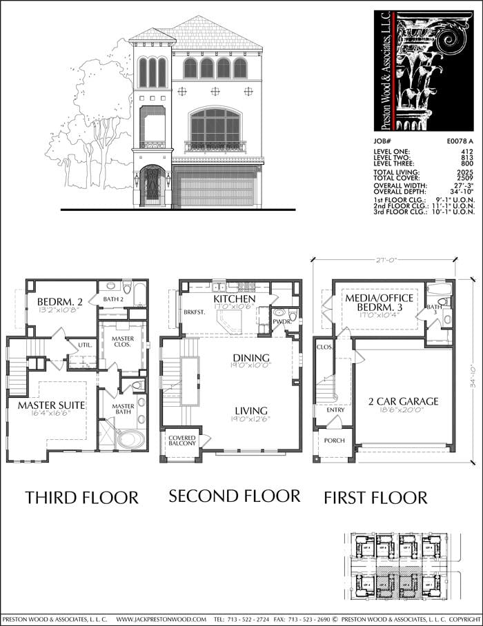 This townhome plan has 2025 square ft. of living space. This townhouse plan design has a width of 27′-0″ and a depth of 34′-10″.