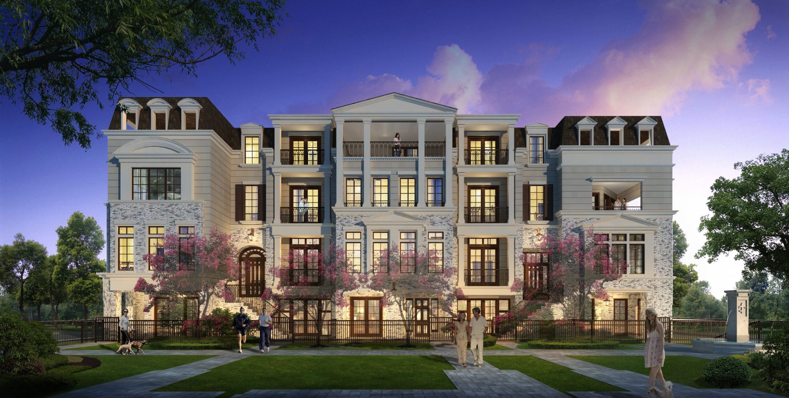 This lovely townhouse makes use of vertical space to pack a lot of house onto a little foundation. A rear 2-car garage leads to the first floor with the first of 4 rooms, one of 4 full baths, and a porch. Up the stairs, there is a half bath, a kitchen and dining room, a living room, and 2 balconies. The next floor holds the utility room and 2 of the aforementioned rooms and bathrooms. Finally, the last floor has the final room and bathroom combo, a large area for anything, and a covered terrace. There is also an elevator for easy access to every floor!