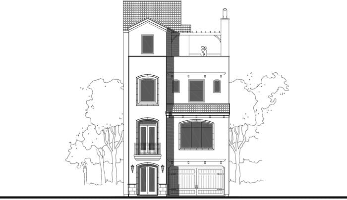 This townhome plan has 4800 square ft. of living space. This townhouse plan design has a width of 33′-10″ and a depth of 63′-7 1/2″.