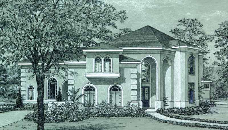 This two-story house plan has 4679 square ft. of living space. This two-story home plan design has a depth of 70′-4″ and a width of 77′-0″.