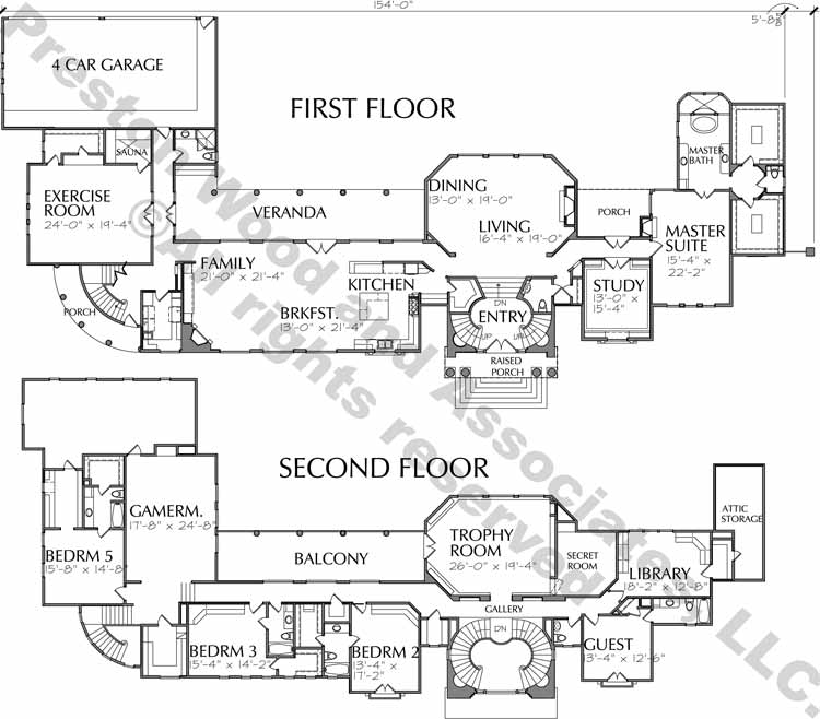 This two-story home plan has 7866 square ft. of living space. This two-story house plan design has a depth of 70′-10″ and a width of 154′-0″.