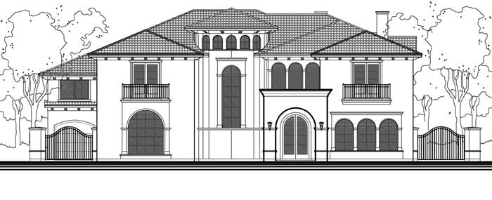 This two-story house plan has 7412 square ft. of living space. This two-story home plan design has a depth of 88′-5″ and a width of 86′-6″.