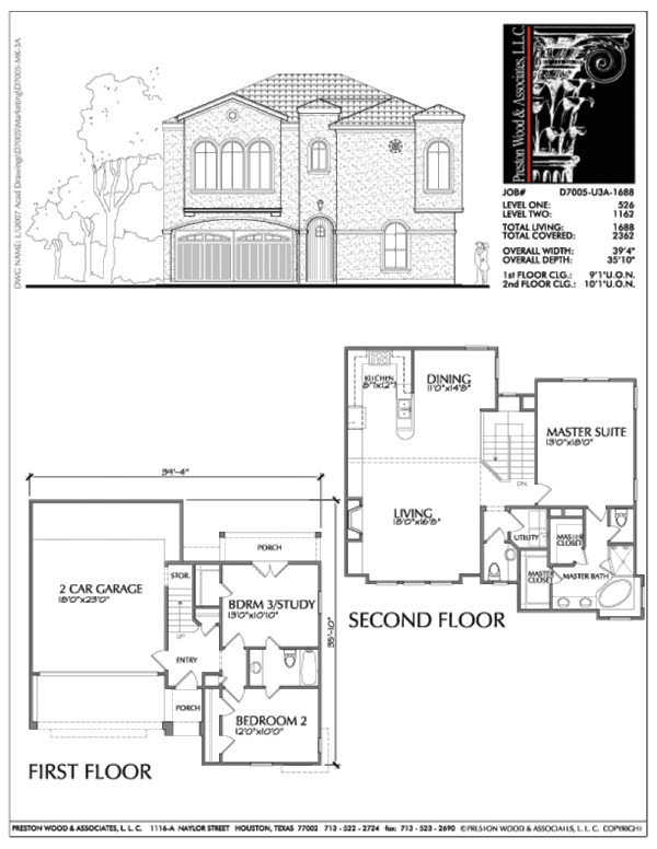 This two-story urban house plan has 1688 square feet of living space. This urban home plan design has a depth of 35′-10″ and a width of 39′-4″.