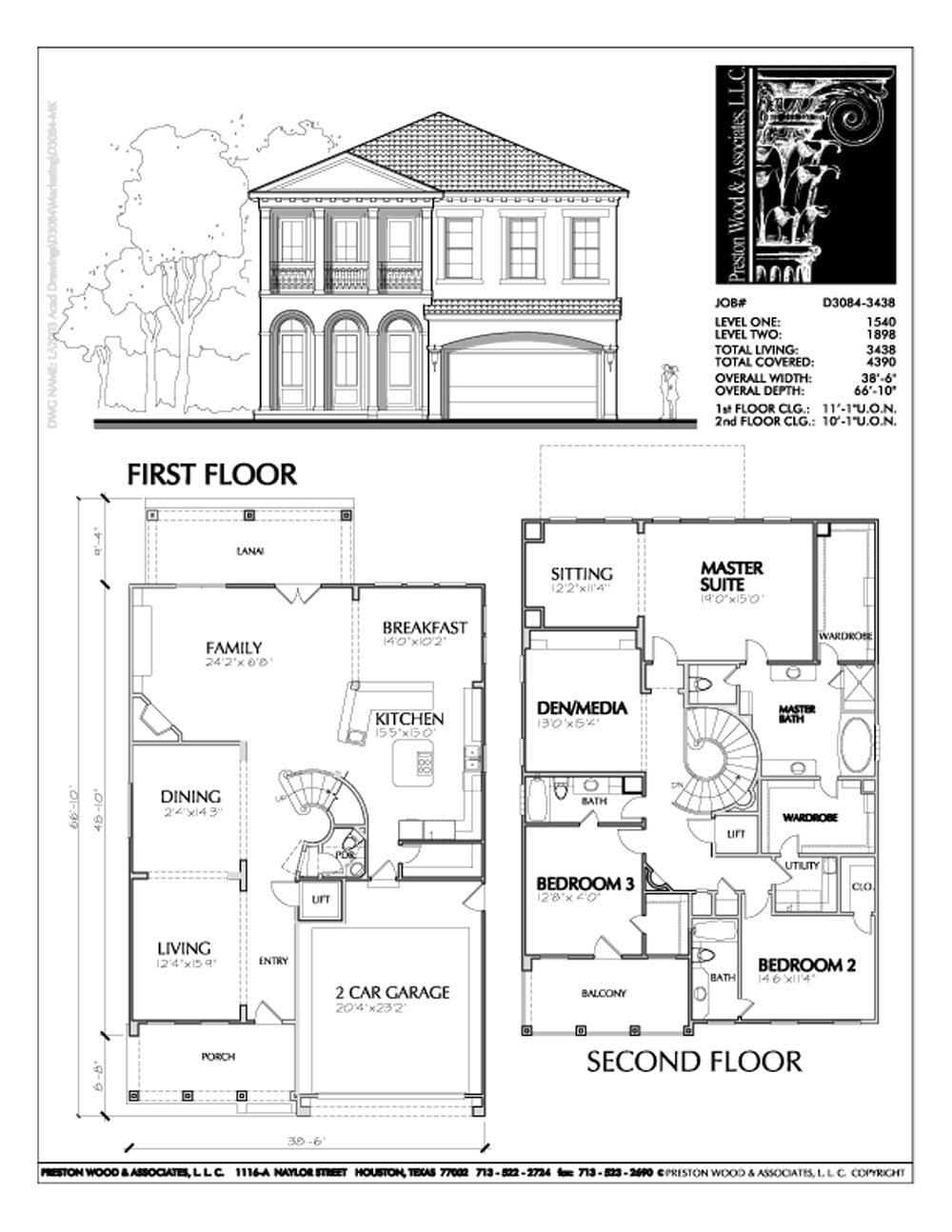 This inner city urban home plan has 3438 square feet of living space. This two-story urban house plan design has a depth of 66′-10″ and a width of 38′-6″.