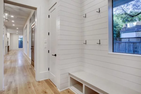 Measurements are: 4428 square ft. of living space and has a width of 43′-8” and a depth of 85′-4″. This plan has 4 bedrooms, 4 full baths, and 2 half baths. This house is especially cool, including a large kitchen with an island, a study, a buffet area, a two-car garage, a spacious courtyard and porch, an amazing walk-in closet and coffee bar for the master bedroom, a balcony, and a roof deck. A lot to love!