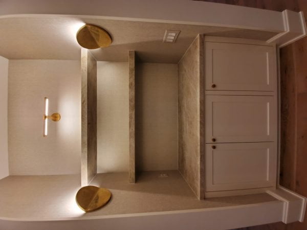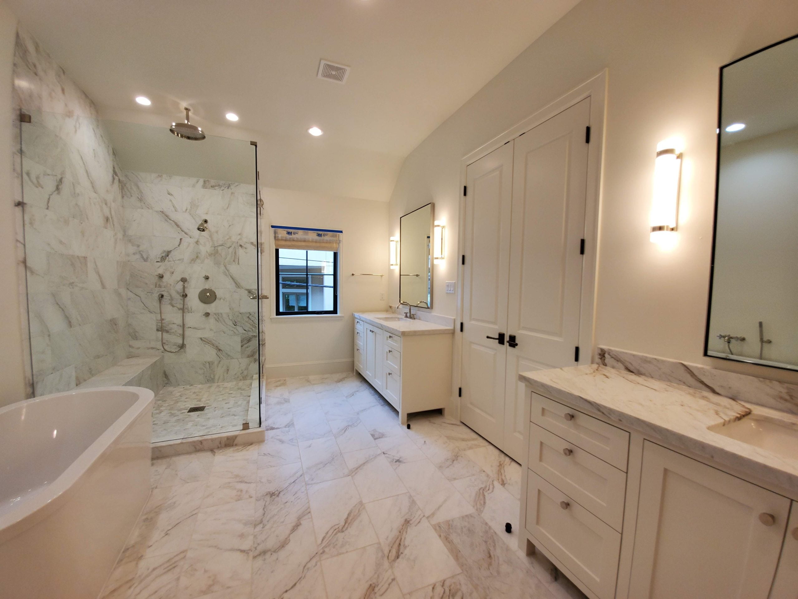 Measurements are: 5010 square ft. of living space and has a width of 43′-8” and a depth of 76′-4″. Included are 4 bedrooms and 4 and a half baths. Some highlights of this spacious plan are the courtyard and covered 2-story lanai, two-car garage, game room, wine fault, and large upstairs utility room with storage and easy access to bedrooms.