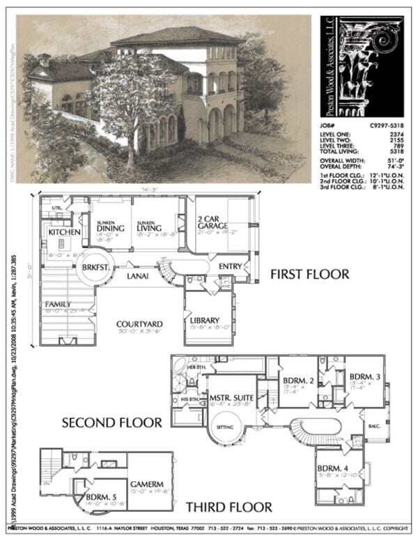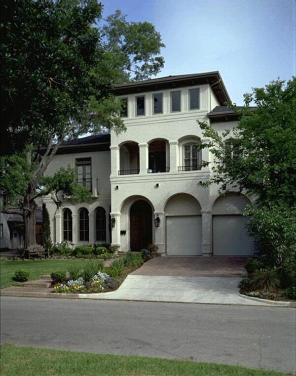 This three-story inner city urban home plan has 5318 square feet of living space. This urban house plan design has a depth of 74′-3″ and a width of 51′-0″.